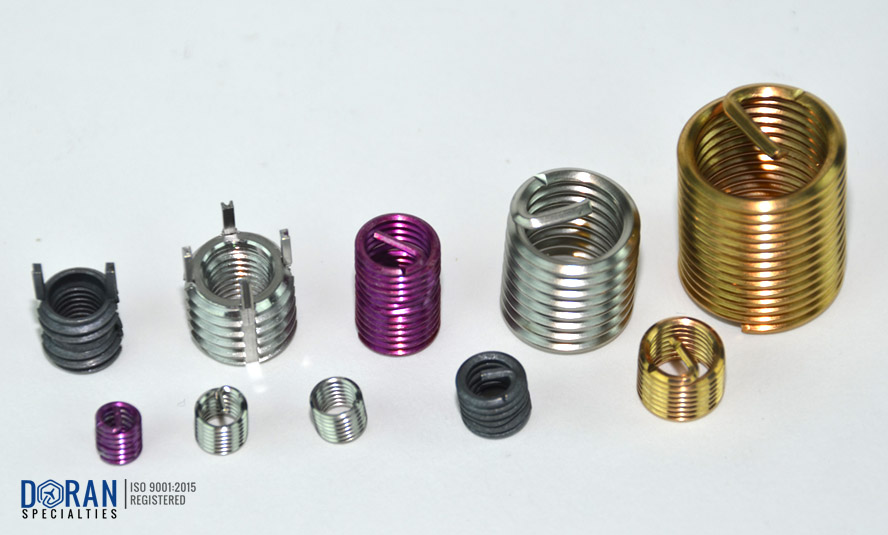 Inserts can be obtained in either coiled or solid fabrications. Inserts are generally stainless steel, steel, brass, or aluminum. Inserts are also available with a locking feature that locks the installed part. The determination of whether to install coiled or solid inserts is dependent upon application. Mil-Spec applications are the most common applications.